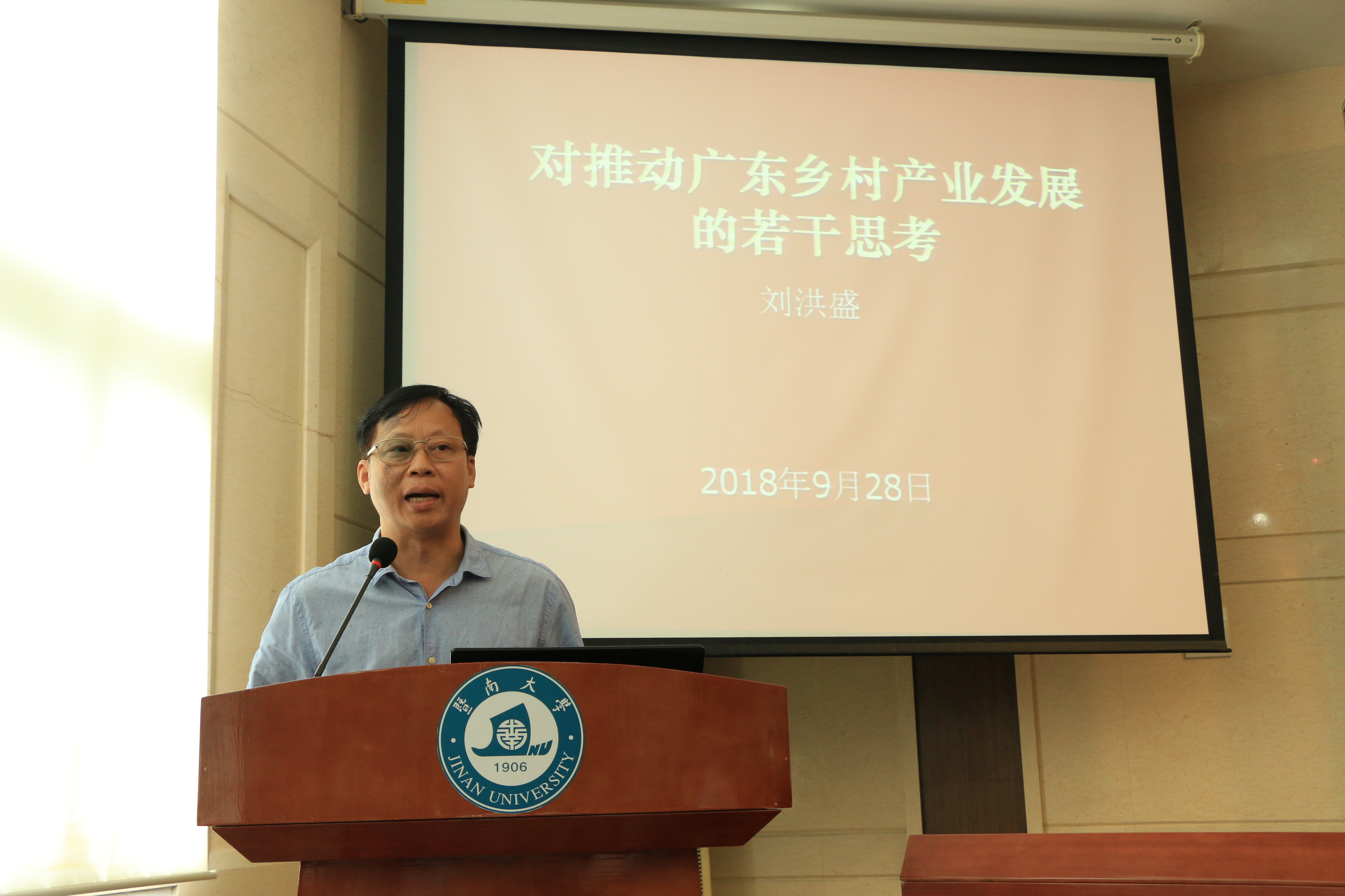 刘洪盛副主任作了题为“对推动广东乡村产业发展的若干思考”的演讲。他指出,推动广东乡村产业发展,首先需要准确领会中央精神,尤其是总书记在两会上对乡村农业的重要指示,包括夯实农业生产基础、质量兴农、推动农村一二三产业融合发展等;其次要把握省情农情,广东的农业有着“三大三不足”的特点,一方面是经济大省、农业大省和消费大省,另一方面也面临着农业资源不足、农产品自给不足、现代农业发展水平不足的劣势;广东推进乡村产业兴旺,应从准确定位、把握好安全底线、促进增收、培育现代农业园区等载体建设、激发多种要素活力、集中对打造产业集群、实施品牌行动等方面发力促进农村产业发展。