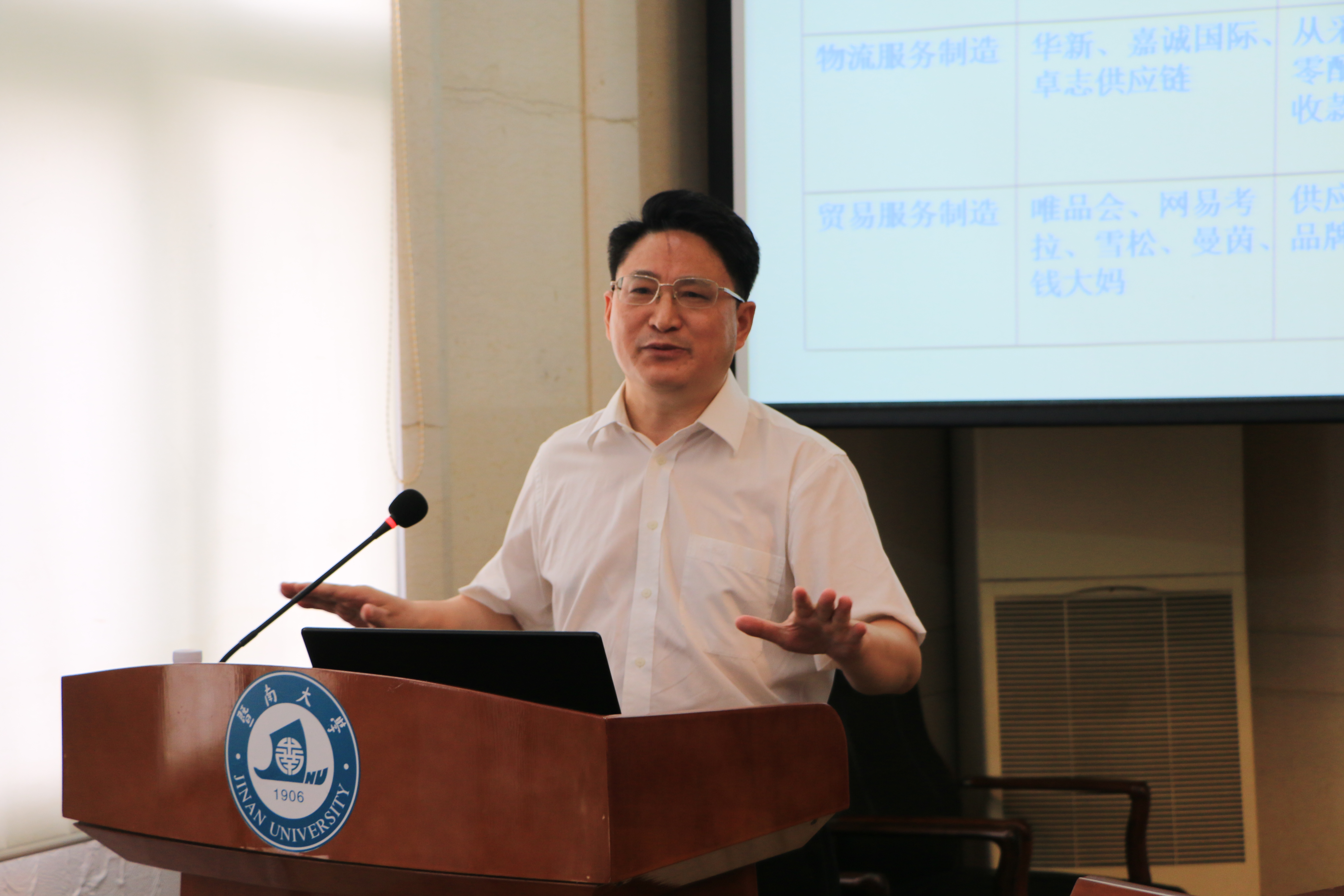 王先庆结合企业一线调研,发表了题为《从“互联网+”到“智能+”:新业态、新模式与广州样板》的学术演讲。他指出,当前,我国经济正处于快速叠代变革的新时代,工业化、城市化、信息化进程都进入到后期,服务化、社区化、智能化浪潮来临,在互联网、大数据、物联网、区块链、人工智能、移动终端等新技术广泛应用背景下,传统的工厂时代、产品时代、店铺时代都正在成为过去,在此背景下,广州大力推进现代服务业与先进制造业深度融合,就成为构建现代化经济体系、实现经济高质量发展、推动老城市新活力的重要途径和战略举措,广州在新业态新模式探索方面可以通过服务的制造化、制造的服务化及商品定制化的跨界融合尝试,提出广州经验和广州样本、启示。