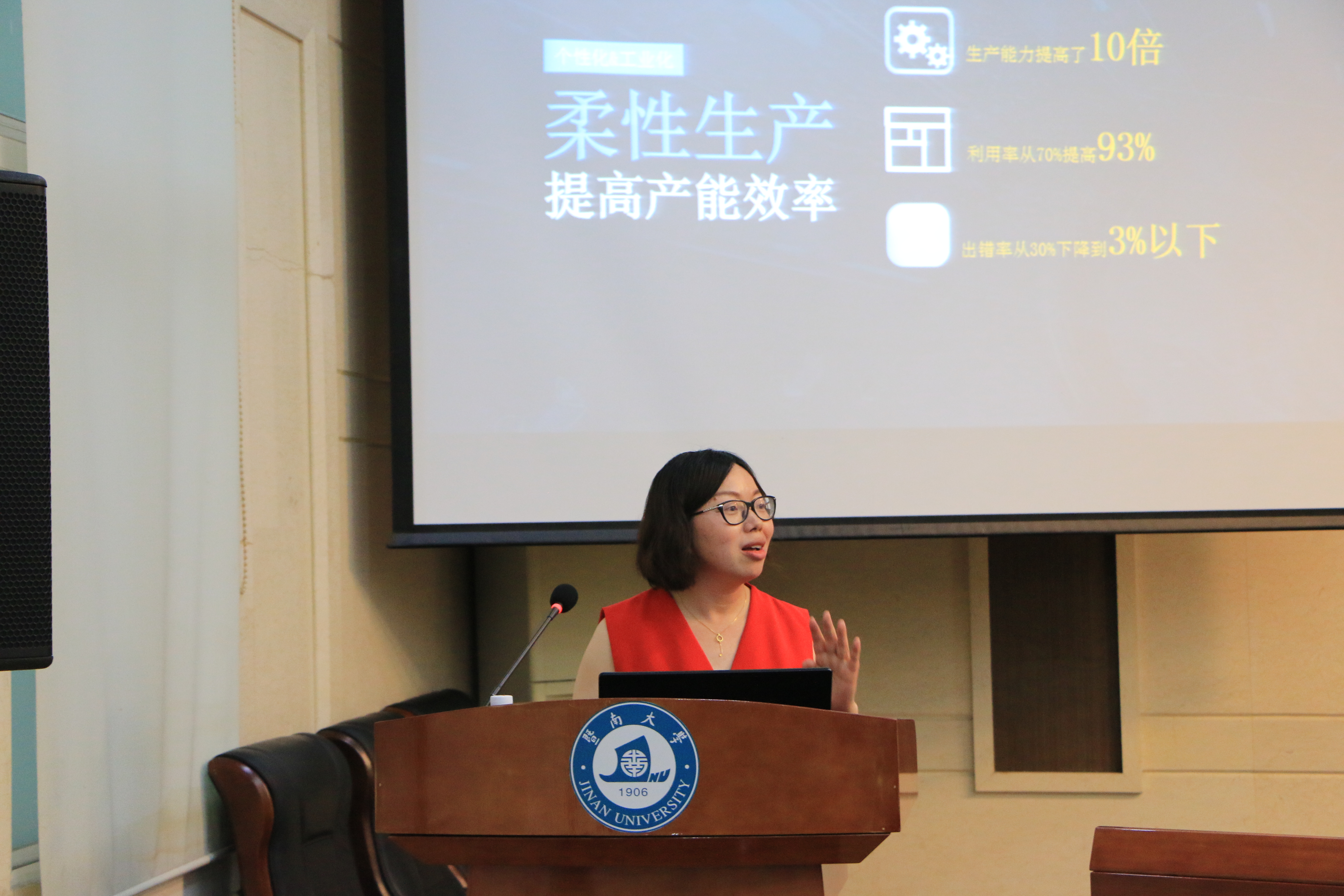 企业代表张志芳以大数据在尚品宅配定制和生产过程中的应用为切入点,分享了她对广州现代服务业的思考。她指出,随着定制产品消费心理越来越高,尚品宅配的个性化消费已经由以前简单支付产品转变成交付解决方案的C2B模式,由此带来的个性化设计与生产安装规模化的问题,通过工业4.0得以解决,实现了消费互联到工业互联的转变,这为广州现代服务业转型与发展的提供了一个鲜活案例。