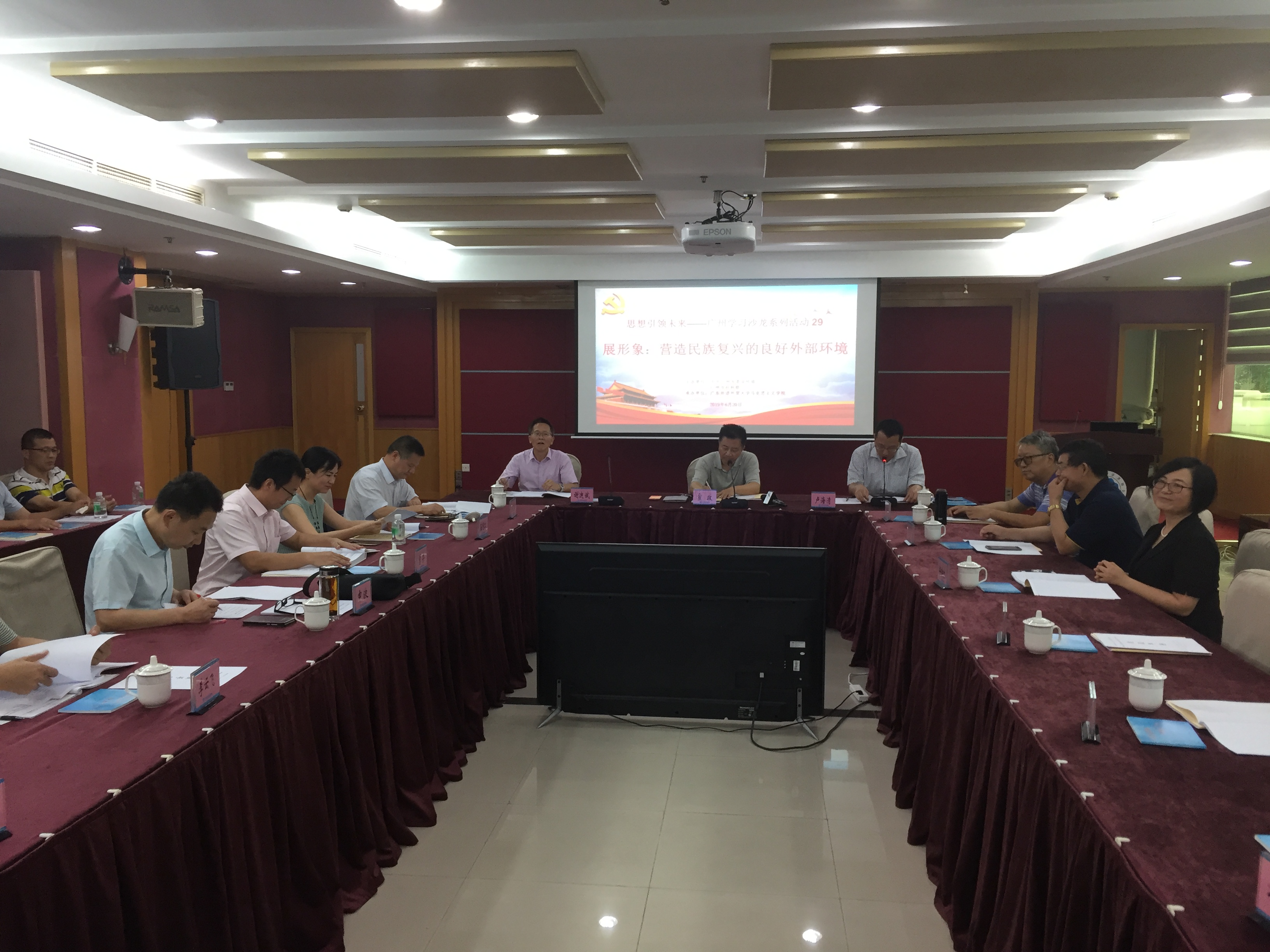 6月20日,由中共广州市委宣传部、广州市社科联主办,广东外语外贸大学马克思主义学院承办的“展形象:营造民族复兴的良好外部环境”——广州学习沙龙第二十九场在广州市社科联会议室顺利举行。广州市社科联宣政副巡视员出席会议并讲话。来自华南师范大学、华南理工大学、南方医科大学、广东财经大学、广东工业大学、广东外语外贸大学等高校的专家学者、市社科联部分干部、媒体代表参加了活动。本场学习沙龙由广东外语外贸大学马克思主义学院党总支书记卢海清主持。