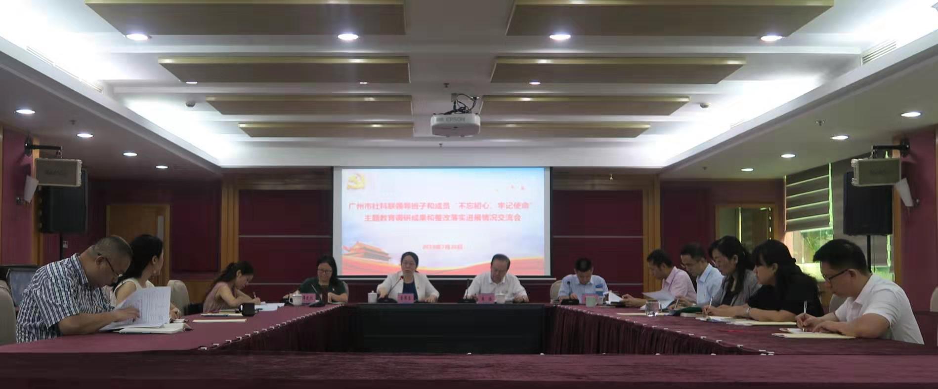 7月26日上午,市委宣传部副部长,市社科联党组书记、主席曾伟玉同志主持召开广州市社科联领导班子和成员“不忘初心、牢记使命”主题教育调研成果和整改落实进展情况交流会。市委第七巡回指导组副组长李兵同志和组员鄢艳同志到会指导。市社科联领导班子成员、处级以上领导干部参加了会议。