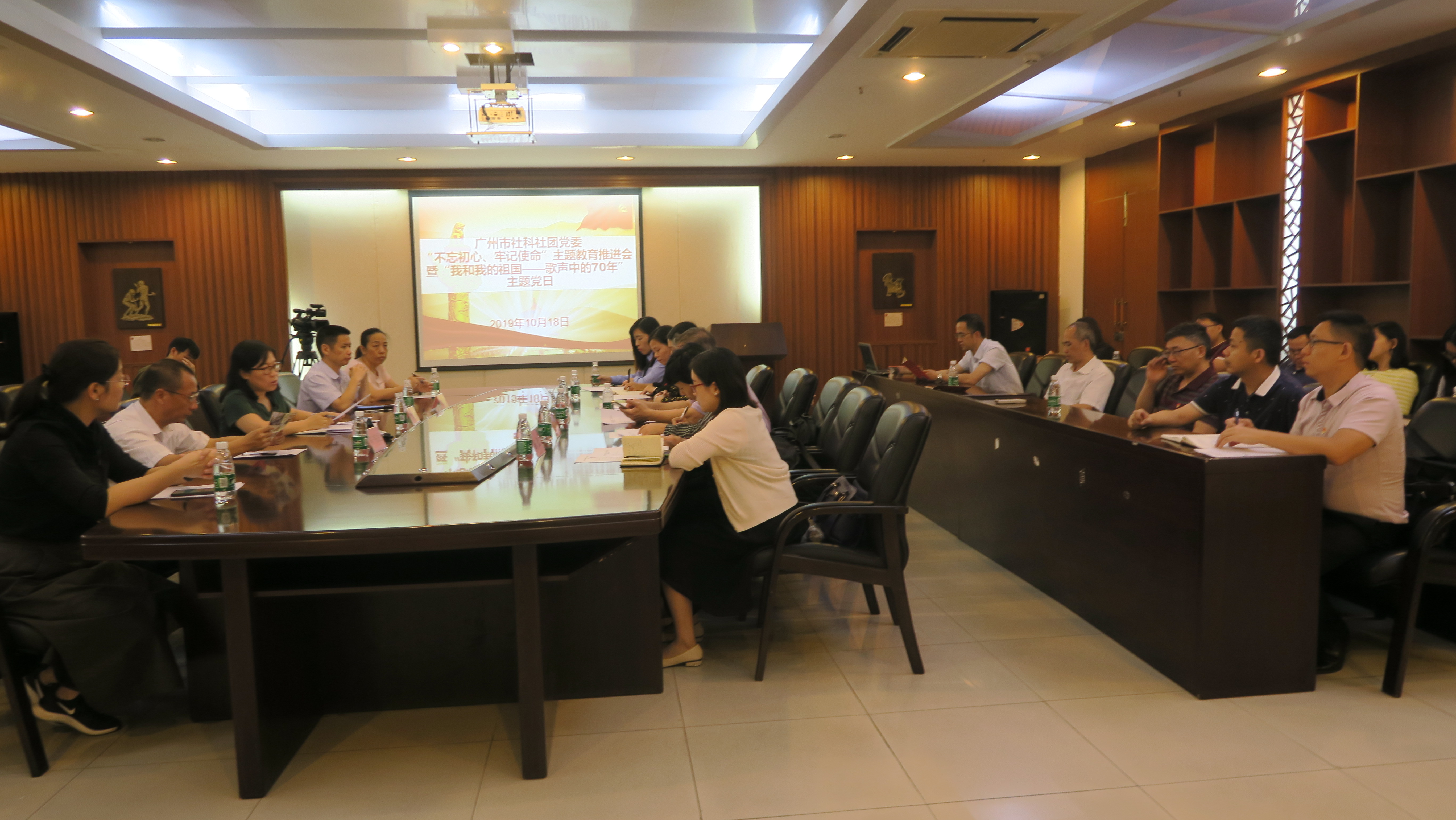 为巩固深化市社科联第一批主题教育成效,上下联动推进社科类社会组织第二批主题教育,结合庆祝新中国成立70周年活动,市社科联、市社科社团党委在海珠区文化馆组织广州市社科社团党委“不忘初心、牢记使命”主题教育推进会暨“我和我的祖国—歌声中的70年”主题党日活动,市社科联全体党员干部及社科类社会组织党支部书记和党员代表近30人参加了活动。