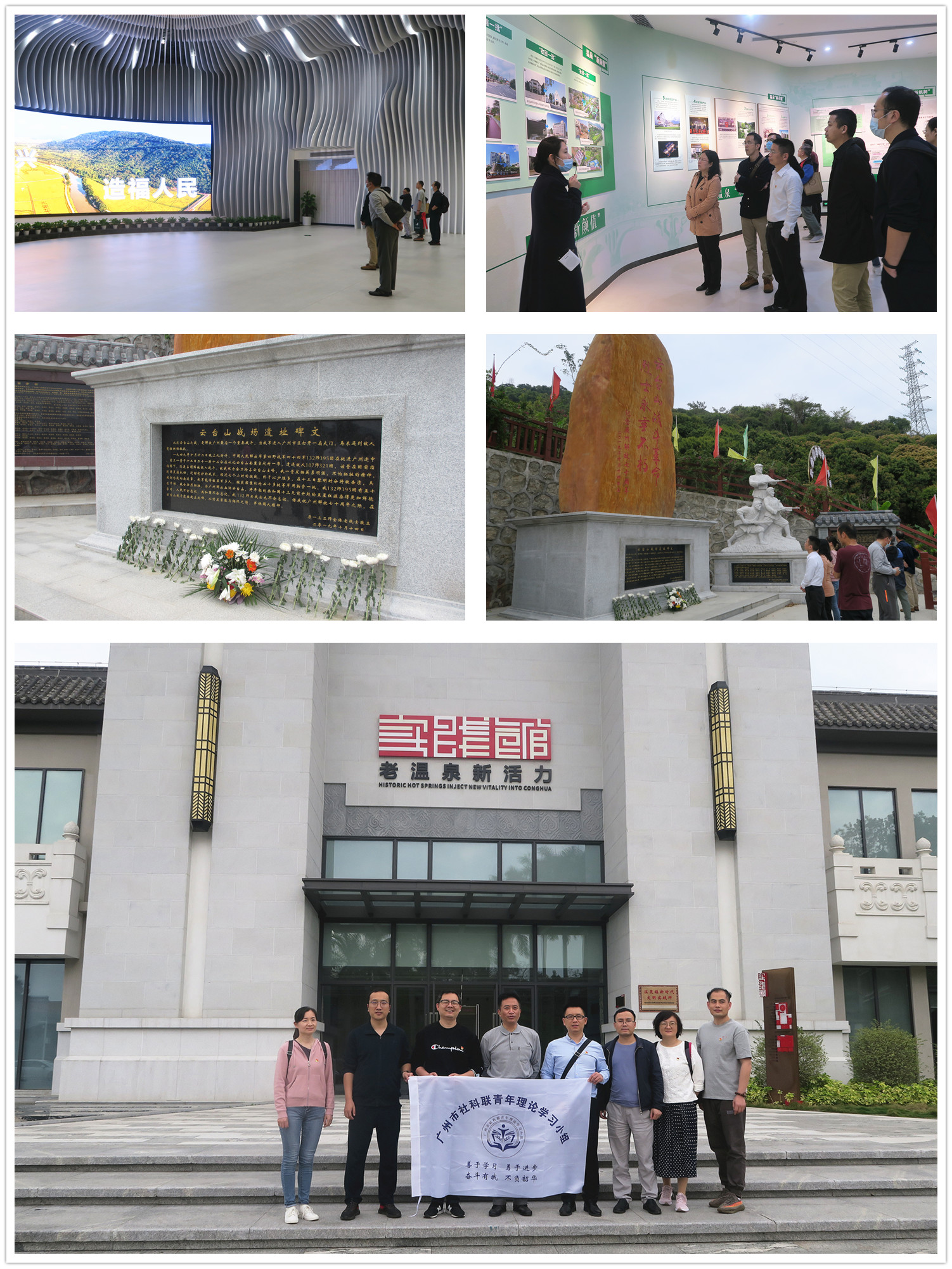 下午,青年理论学习小组来到温泉镇参观“老温泉新活力”实践馆、云台山战役指挥部旧址和烈士纪念碑,借助多媒体展示、实景还原等方式,多层次、多维度地探寻从化区的红色革命印记,感受从化区改革开放以来发生的翻天覆地变化,了解解放广州最后一场战斗的始末以及缅怀牺牲的革命英烈。