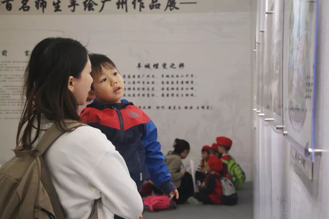 此次画展吸引了许多来广州图书馆的市民前来参观。小梁是仲恺农业工程学院大四美术专业的学生,每一幅作品她都认真观看、拍照留念。她说:“手绘作品中大部分的地标我都去过,创作者们将地标建筑描绘得惟妙惟肖,既有浓厚的文化底蕴又很有现代感,这是一次很有人文气息的画展,我挺喜欢的。”家住越秀区的张妈妈带着两三岁的孩子游走在展馆内。在一副五羊雕塑的作品前,儿子说:“妈妈,五只羊。”张妈妈顺势问儿子:“你记得在哪里见过这五只羊吗?”儿子想了好一会,告诉妈妈在越秀公园里见过。每看一幅画张妈妈都会问儿子是否在哪里看过,然后耐心地讲解画的内容。她说,希望通过这种轻松问答的方式让孩子了解广州这座生活的城市。