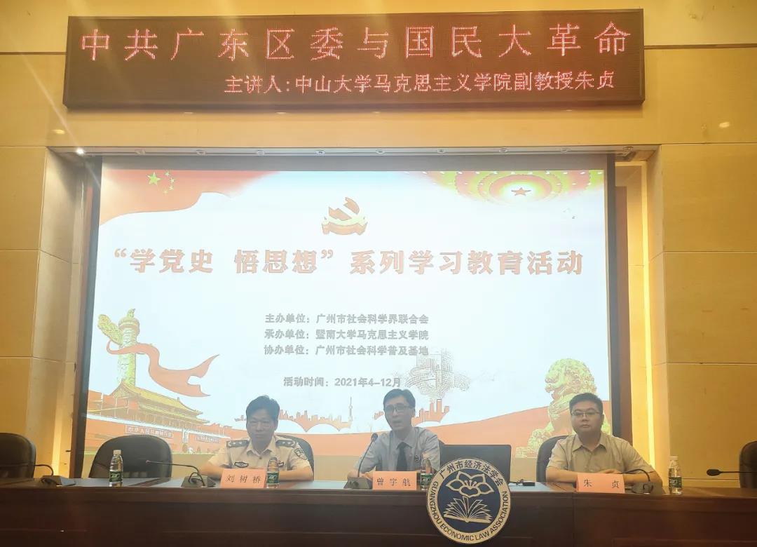 4月15日,由广州市社会科学界联合会主办,广州市经济法学会、广东司法警官职业学院承办,广东艾伯纳律师事务所协办的“学党史 悟思想”系列学习教育活动在广东司法警官职业学院龙洞校区举行。中山大学马克思主义学院的朱贞副教授作了《中共广东区委与国民大革命》的主题讲座,为师生们上了一堂理论有深度、内容有广度的生动党史课。