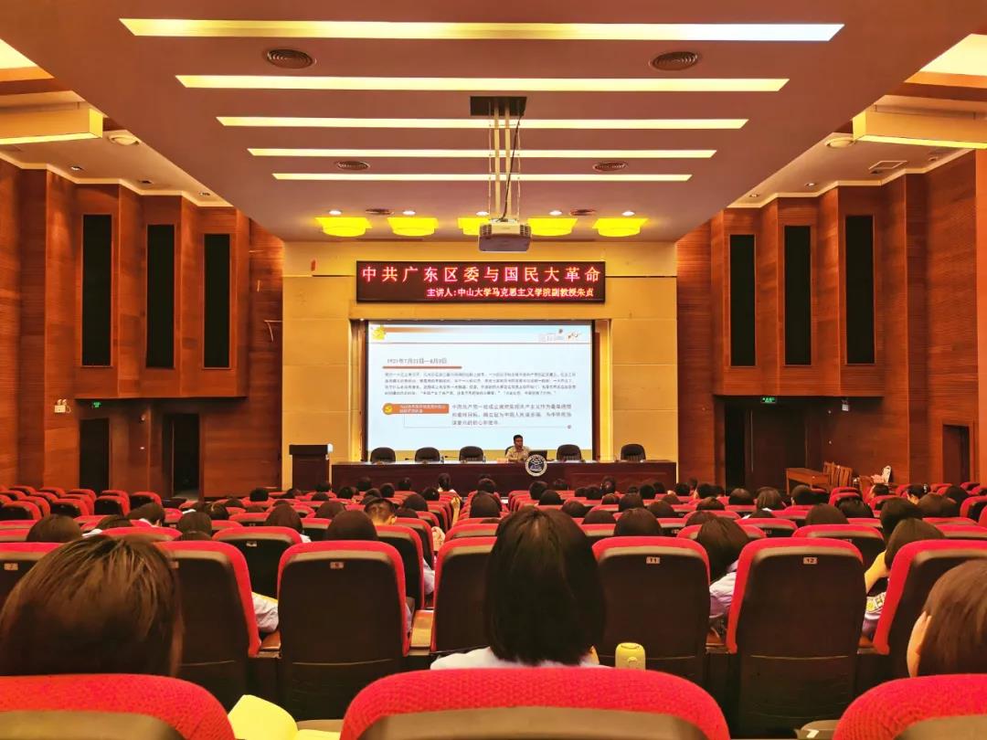 朱贞副教授在讲座中讲述了广东中国共产党早期组织、从中共广东区委到广州地委、中共两广区委的组织发展、中共广东区委与国民大革命等内容。他讲到,中共广东区委成立于1922年,是我党成立前国内最早建立的六个共产党早期组织之一,是大革命时期辖区最广、党员人数最多的地方党组织,为大革命做出了重要贡献。从广东区委到广州地委再到1924年10月两广区委成立的两年时间里,党组织就发展到广东全省各地和广西、闽南、云南等地区。而到1927年4月,经过近5年发展,广东区党员数量从1922年6月的32名,发展到了9027名。