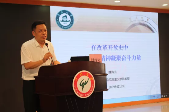 5月6日下午,“薪火相传育新人——党史进校园系列讲座”第四场讲座走进广州大学。本次讲座由广州市社科联主办,暨南大学马克思主义学院承办,广州大学马克思主义学院协办。暨南大学马克思主义学院魏传光教授主讲“在改革开放史中汲取创新精神凝聚奋斗力量”,广州大学马克思主义学院师生120余人参加讲座。