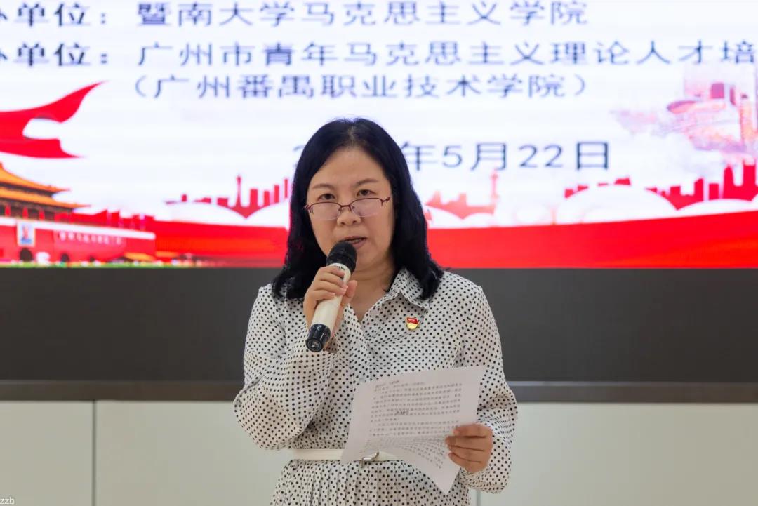 5月22日下午,由广州市社科联主办,暨南大学马克思主义学院承办,广州市青年马克思主义理论人才培养研究重点基地(广州番禺职业技术学院)协办的“薪火相传育新人——党史进校园系列讲座”(第九场),在番禺职业技术学院思政课智慧课室举行。广州大学马克思主义学院吴九占教授作主题报告,广州番禺职业技术学院马克思主义学院院长曹群教授主持活动,该校师生150余人参加活动。