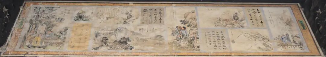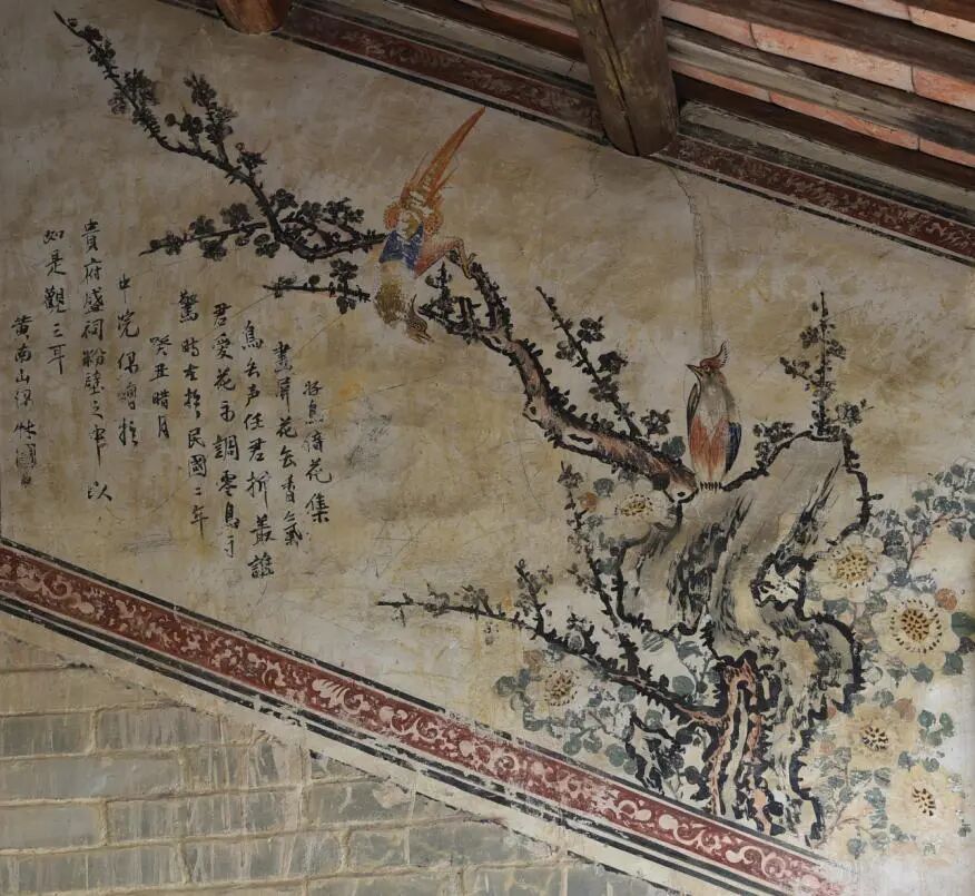 去过广州陈家祠的朋友应该都对陈家祠精美的砖雕有很深的印象。陈家祠有六幅大型砖雕,其中有三幅依然保有落款、年款以及其作者的名款,我们也因此可以得知,这些大型砖雕都出自砖雕大师黄南山之手。令人感到惊奇的是,这位砖雕大师居然还是一位壁画高手。在广州市花都区的九座祠堂里,至今依然能够看到黄南山大量的壁画作品,这些作品的布局和陈家祠的砖雕相似,款识也相同。这些作品是今日研究晚清民国广府砖雕大师黄南山的唯一的资料来源,非常具有研究价值。
