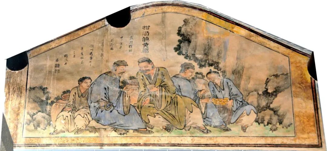 地方志虽对部分工匠生平事迹有所反映,但并不完整,也不一定准确。以广府壁画大师杨瑞石为例,1995年的《番禺县志》记载,杨瑞石于1908年逝世,但在广州市番禺区沙湾镇紫坭村梁氏宗祠中,至今仍然保存着杨瑞石在1911年创作的壁画《柑酒听黄鹂》,壁画上的款识清晰地显示创作年份为1911年。