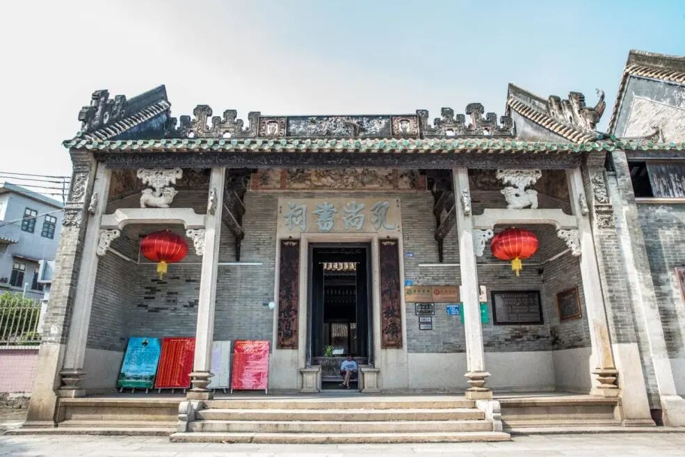 广府建筑一般指广府地区汉族民系居住地域的传统建筑。广府传统建筑,蕴含了丰富的文化内涵,承载了悠久的历史变迁,是岭南建筑重要的组成部分。广府传统建筑装饰,通常是指“三雕两塑一画”。本期讲座,黄利平老师介绍的壁画、砖雕和灰塑也包含其中。黄利平老师特意为读者介绍了番禺大龙街大龙村1884年所建的孔尚书祠。时至今日,孔尚书祠的大门正面依然能够看见当年建造时的壁画、砖雕和灰塑,尤为珍贵。