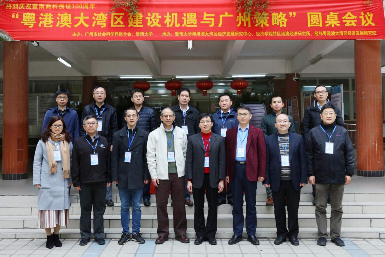2018年12月13日,由广州市社会科学界联合会和暨南大学主办,暨南大学粤港澳大湾区经济发展研究中心、特区港澳经济研究所和经纬粤港澳大湾区经济发展研究院联合承办的“粤港澳大湾区建设机遇与广州策略”圆桌会议在暨南大学石牌校区召开。本次会议是“开放广州 创新之城——第六届广州学术季”系列学术研讨活动之一,旨在探讨广州如何利用粤港澳大湾区建设带来的机遇实现更高水平的发展。来自美国犹太大学、中山大学、广东省社科院、广州市社科院、暨南大学等机构的与会学者围绕“引领大湾区世界级先进制造业集群发展的广州路径”、“人文湾区建设背景下的穗港青年文化交流与合作新空间”、“广州建设粤港澳大湾区增长极的重点及策略”、“粤港澳大湾区土地利用与政策保障机制创新”、“广州现代服务业发展”、“粤港澳大湾区青年创新创业”、“发挥广州在粤港澳大湾区中的引领作用”、“粤港澳大大湾区城市网络时空演变及其对广州的启示”、“广州的创新与发展”等议题展开深入研讨,为广州充分利用粤港澳大湾区建设机遇,推进高水平发展进行了多视角、多方位出谋划策。(科研规划部)