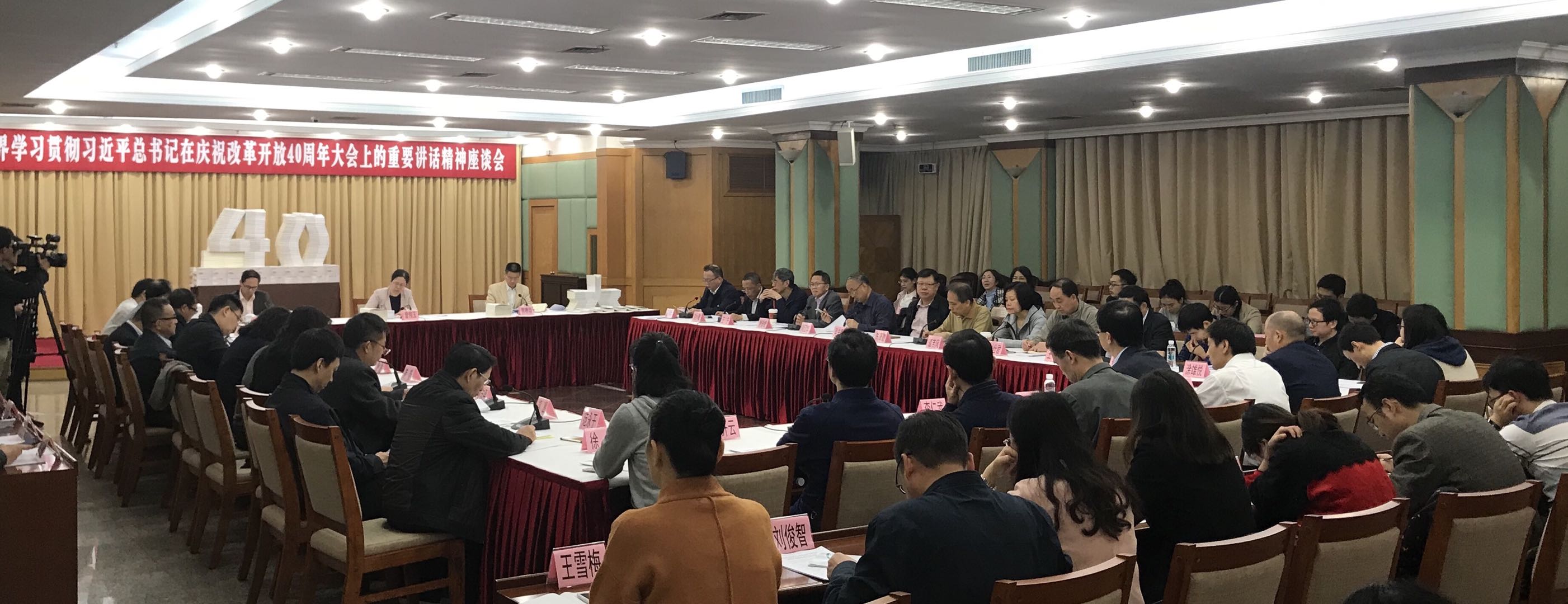 会上,来自中山大学、华南农业大学、广东外语外贸大学等高校、广东省社科院等院校和研究机构的10名专家分别作了主题发言,畅谈了学习习近平总书记重要讲话的体会。与会人员在交流发言时一致认为,庆祝改革开放40周年大会是党中央在中国特色社会主义进入新时代,在全面建成小康社会决胜阶段召开的一次十分重要的会议。习近平总书记的讲话总揽大势、思想深邃、感召力强、催人奋进,是一篇闪耀着马克思主义真理光辉的纲领性文献,贯穿着与时俱进的实践伟力,是新时代改革开放再出发的根本遵循和行动指南,体现了宽广的战略视野和深刻的政治远见,具有极强的时代性、理论性、思想性、指导性,对于鼓舞和激励全党全军全国各族人民不忘初心、牢记使命,高举中国特色社会主义伟大旗帜,继续把改革开放推向前进,奋力实现“两个一百年”奋斗目标、实现中华民族伟大复兴的“中国梦”而不懈奋斗,具有重大的政治意义、理论意义、时代意义和实践意义。