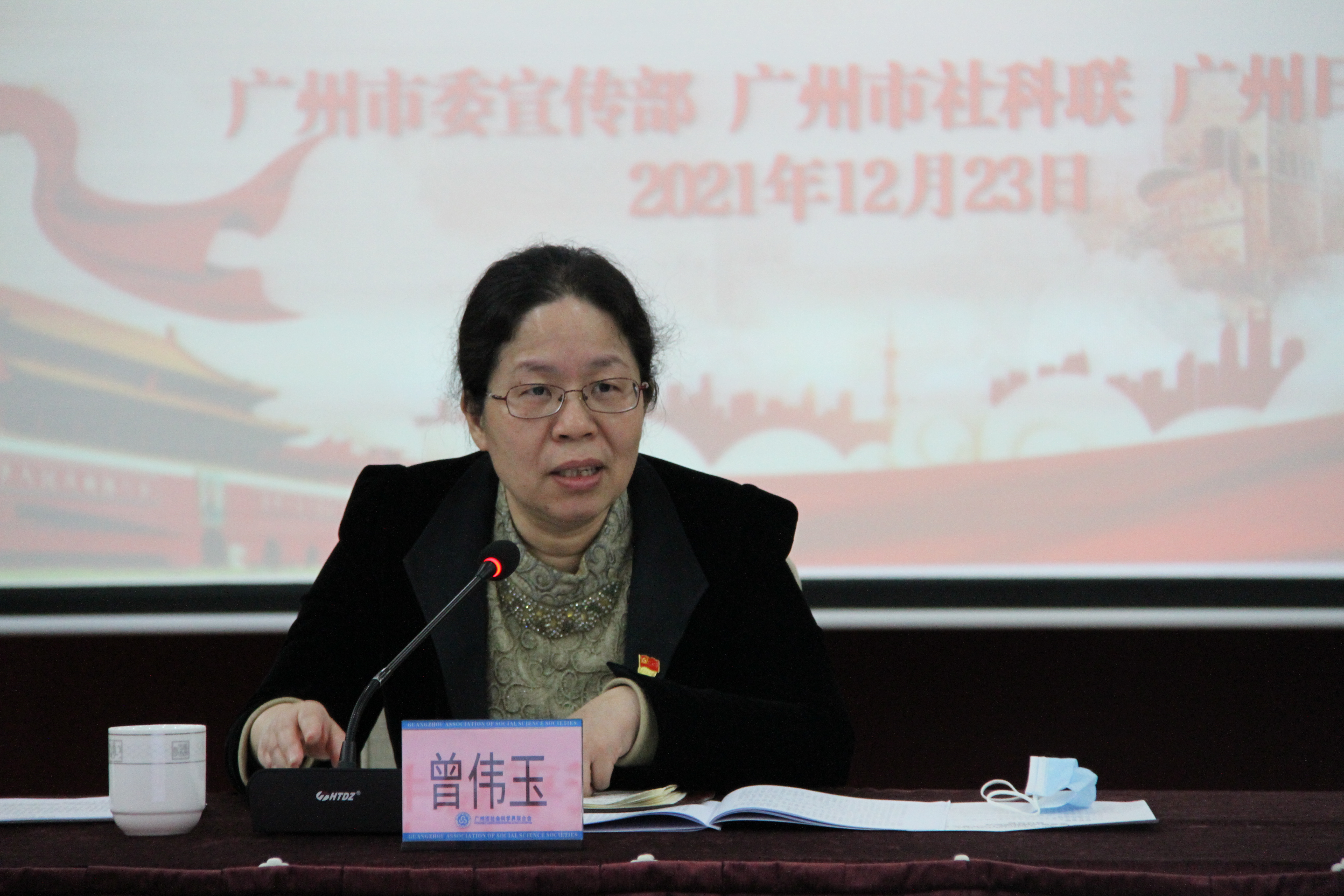 2021年12月23日,中共广州市委宣传部、市社科联和广州日报社组织召开广州社科理论界学习习近平总书记在中国文联十一大、中国作协十大开幕式上的重要讲话精神座谈会。广州市委宣传部常务副部长,市社科联党组书记、主席曾伟玉出席会议并讲话。