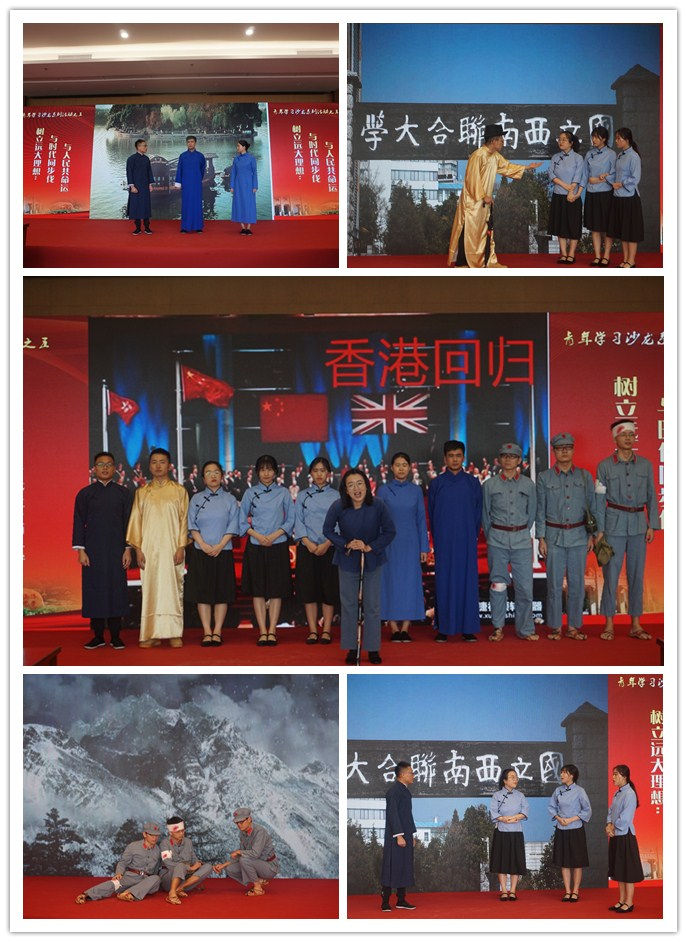 华南理工大学马克思主义学院蒋艳婷、黄伟强等同学进行了《红色回忆录》的经典演绎。一位拄着拐杖的“老奶奶”讲述了饱经沧桑的祖国是如何走来的,同学们的倾情演绎将历史的重要场景重现在讲台上。
