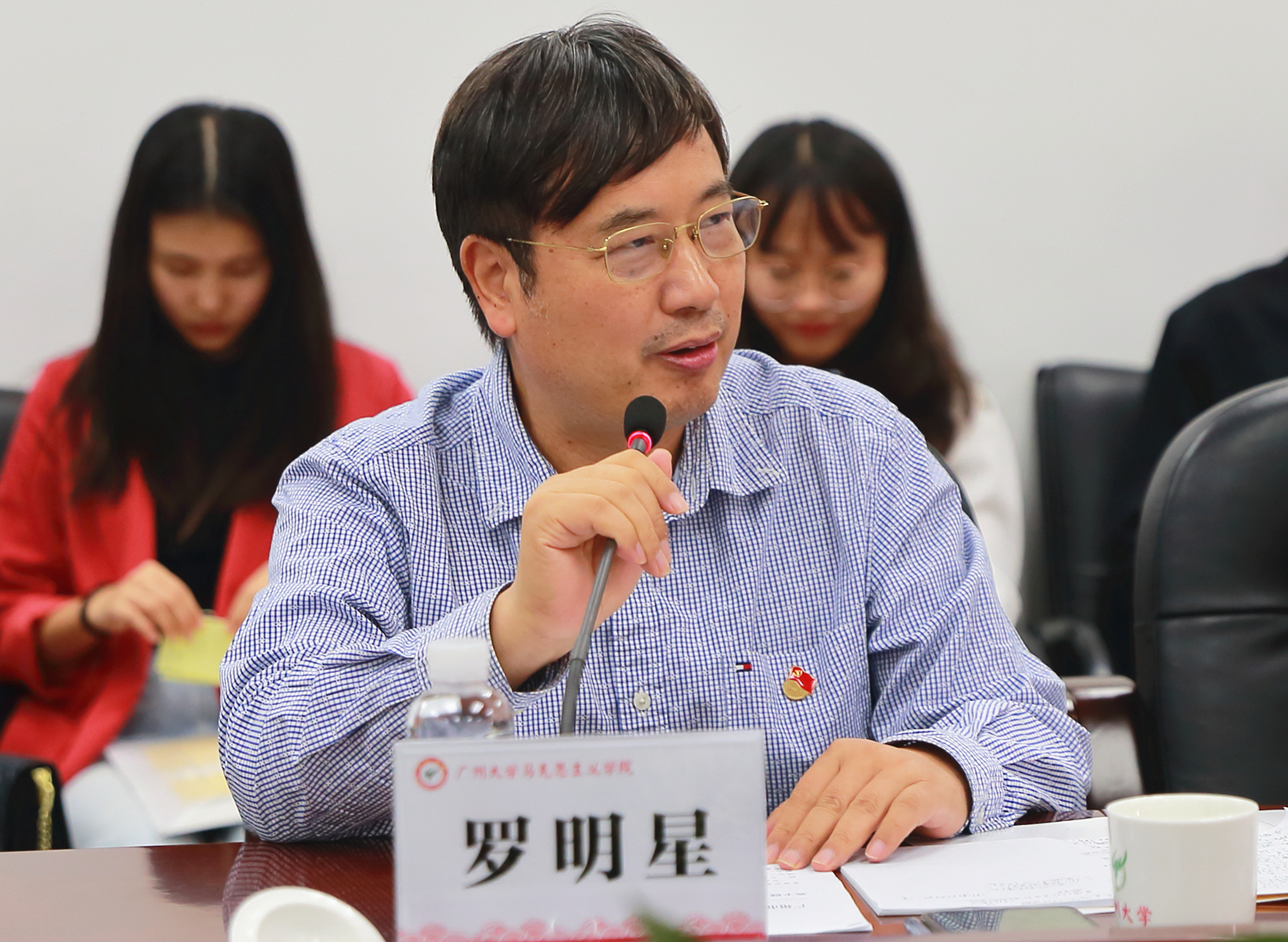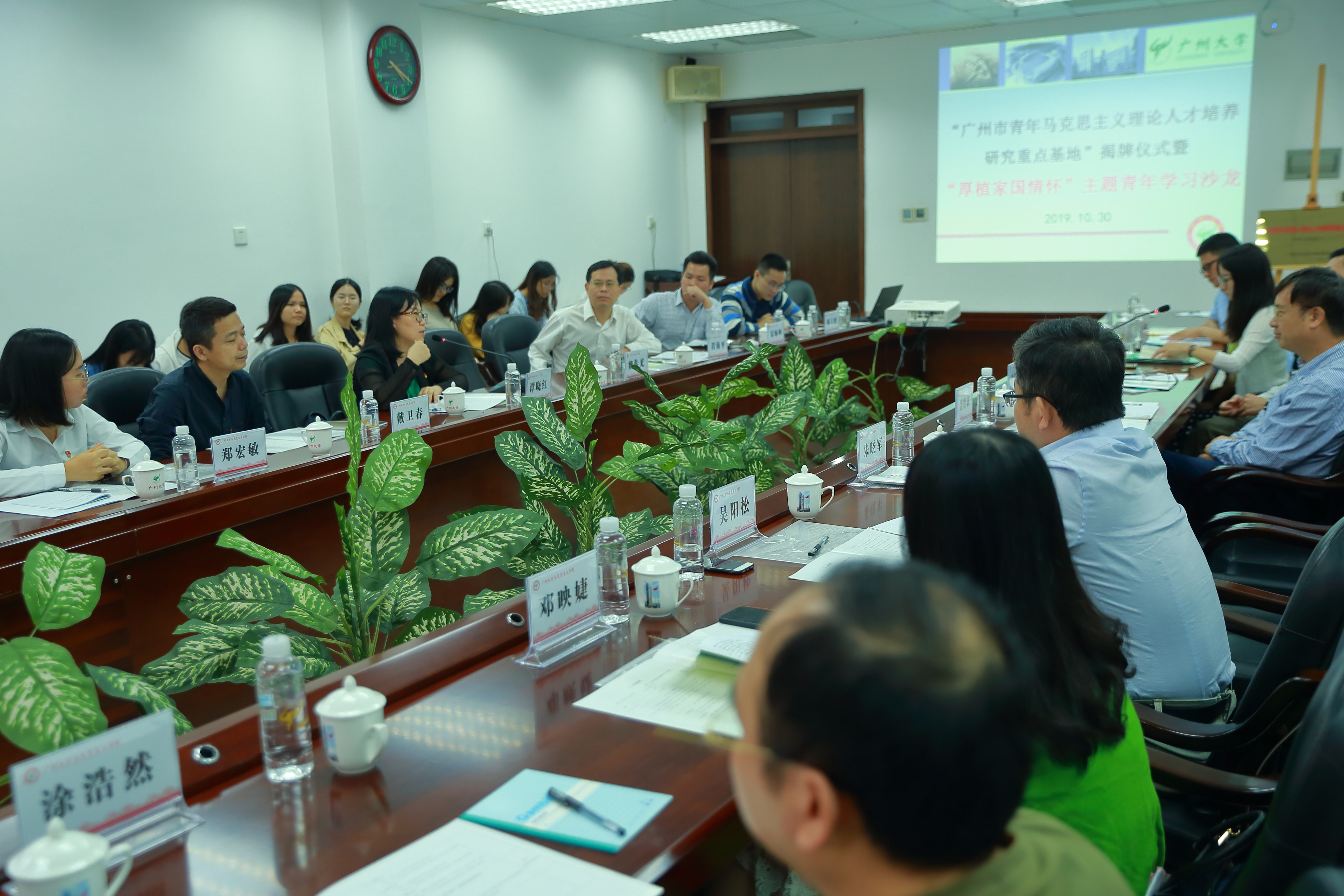 10月30日,由中共广州市委宣传部、广州市社会科学界联合会、共青团广州市委员会联合主办,广州大学马克思主义学院和广州市青年马克思主义理论人才培养研究重点基地(广州大学)承办的“厚植家国情怀:热爱祖国是立身之本成才之基”青年学习沙龙在广州大学举行。广州市社科联专职副主席谭晓红,广州大学党委副书记聂贵新,广州大学马克思主义学院党委书记罗明星以及来自中山大学、华南理工大学、暨南大学、华南师范大学的师生代表参加了活动。会议由广州大学马克思主义学院副院长黄禧祯教授主持。