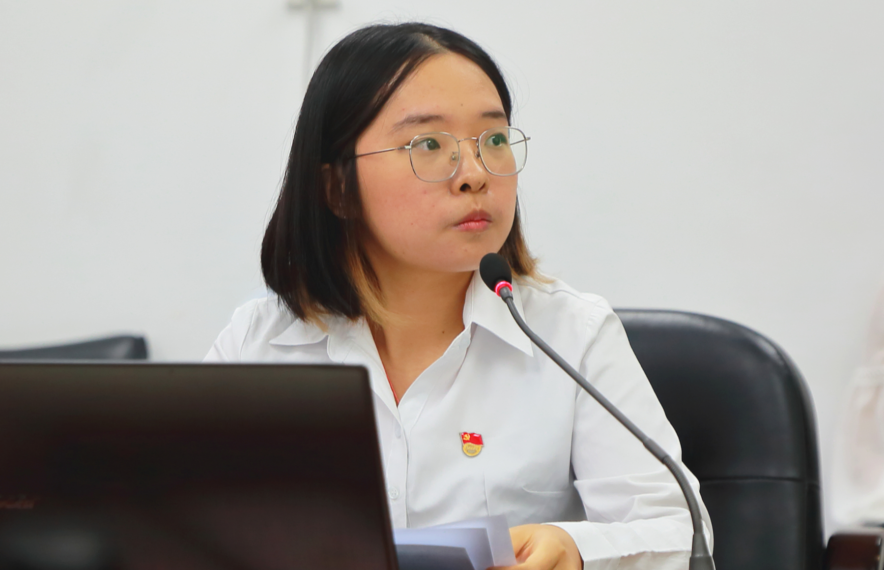 “经验介绍”单元,广州大学硕士研究生郑宏敏以“爱国主义教育的创新—广州大学五室一站模式”为主题,介绍广州大学五室一站爱国主义教育实践的系列新做法、好经验。