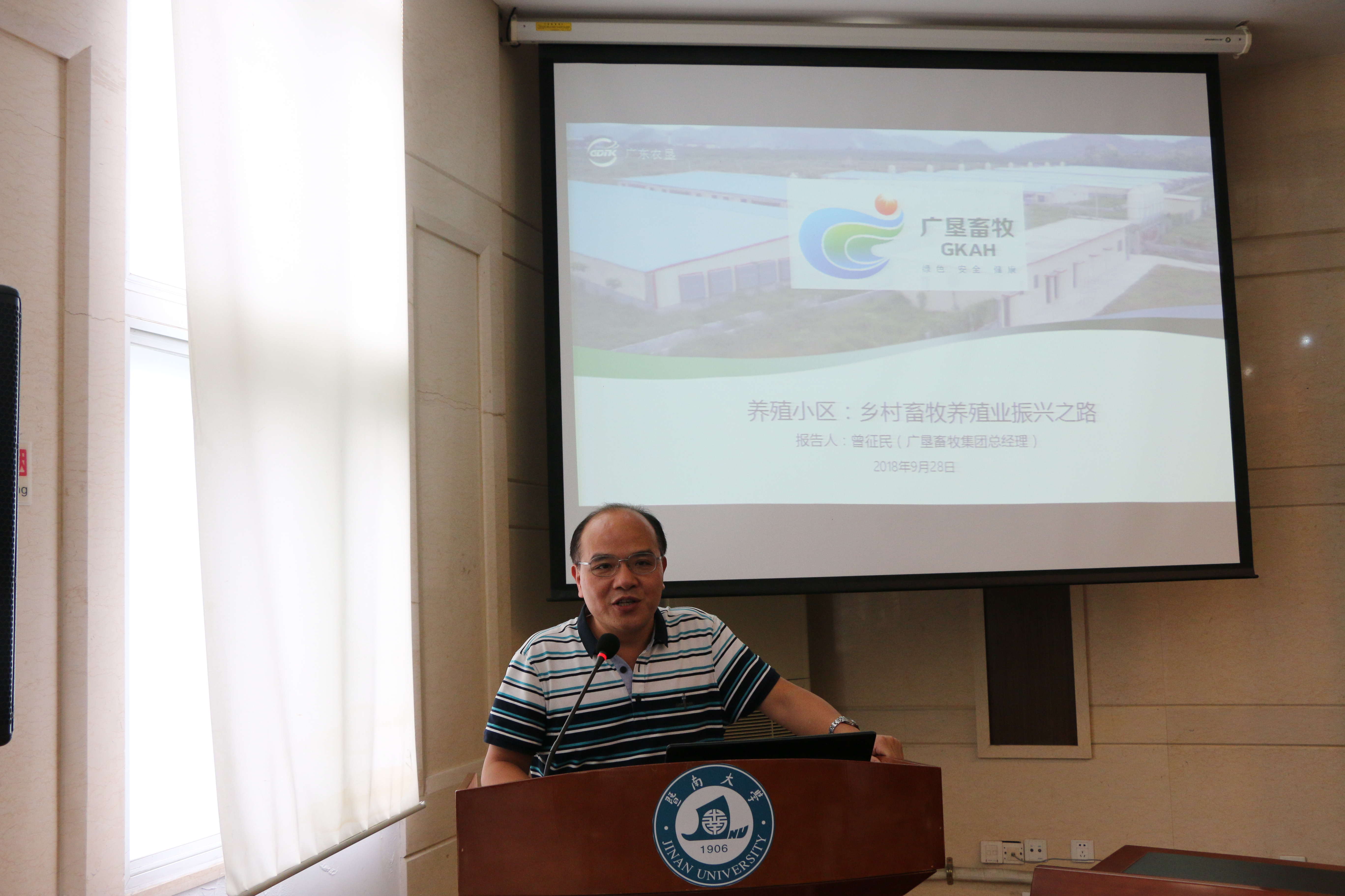 曾征民总经理以养殖小区为例分析了乡村畜牧养殖业的振兴之路,重点分享了广东广垦畜牧集团股份有限公司从2011年开始积极探索如何通过产业龙头的带动来发展周边的生猪养殖,在“公司+农户”传统模式上提出发展“养殖小区”的成功经验。他指出,广州实施乡村产业振兴,需要在优化资金配套、强化金融支持、落实用地保障、统筹环保设施建设服务等方面不断加大力度。