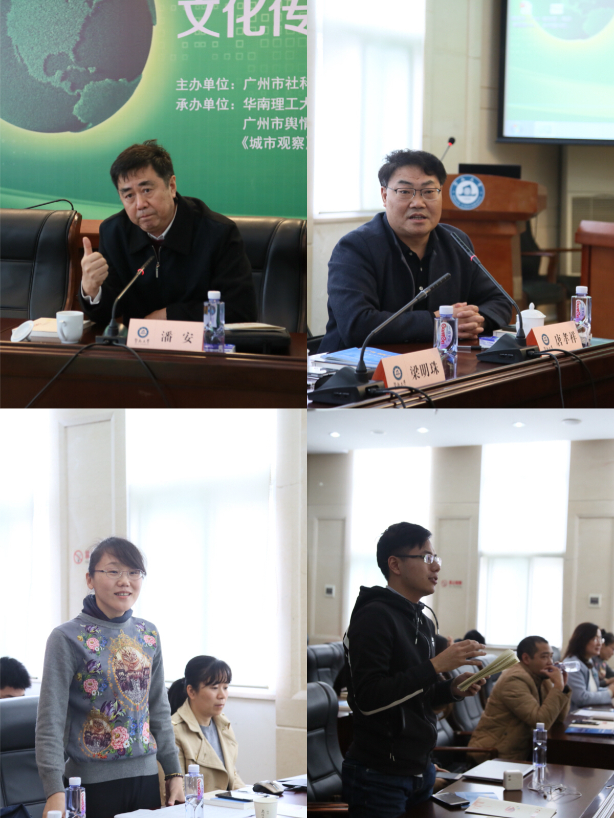 会议由广州市社科联副主席郭德焱主持,暨南大学党委书记、教授、博士生导师林如鹏致辞,来自政府、学界以及企业界的演讲嘉宾围绕会议主题发表了学术演讲。八位嘉宾分别为:广州市规划协会会长、市政府原副秘书长、广州市规划局原局长潘安;英国社科院院士、同济大学城市规划设计研究院总规划师、教授、博士生导师朱介鸣;华南理工大学建筑学院副院长、教授、博士生导师王世福;华南理工大学建筑学院博士生导师唐孝祥;暨南大学旅游规划设计研究院常务副院长、旅游研究所所长、教授、博士生导师梁明珠;中山大学华南农村研究中心副主任、教授、博士生导师谭同学;广州市城市规划勘测设计研究院区域规划设计所副总工吴丹;钉金秀传人、广州小茹裙褂设计师创始人唐志茹。广州市社科联、暨南大学、华南理工大学近60名专业教师、研究生参加了会议。