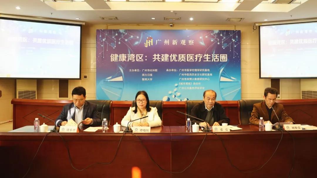 2019年12月25日,第八届广州学术季品牌活动——“广州新观察”第43期学术圆桌会议在暨南大学举行,本期会议由广州市社科联、暨南大学、南方日报社主办,广州市医学伦理学研究基地、广州中医药历史文化研究基地、广州市舆情大数据研究中心、《城市观察》杂志社、广州公共服务评估学会承办,主题是“健康湾区:共建优质医疗生活圈”。市社科联党组成员、专职副主席谭晓红出席会议并致辞,暨南大学、广州市社科联相关部门负责人,暨南大学、广州中医药大学、广州医科大学的师生代表和新闻媒体记者60余人参加会议,广州医科大学马克思主义学院院长刘俊荣主持会议。