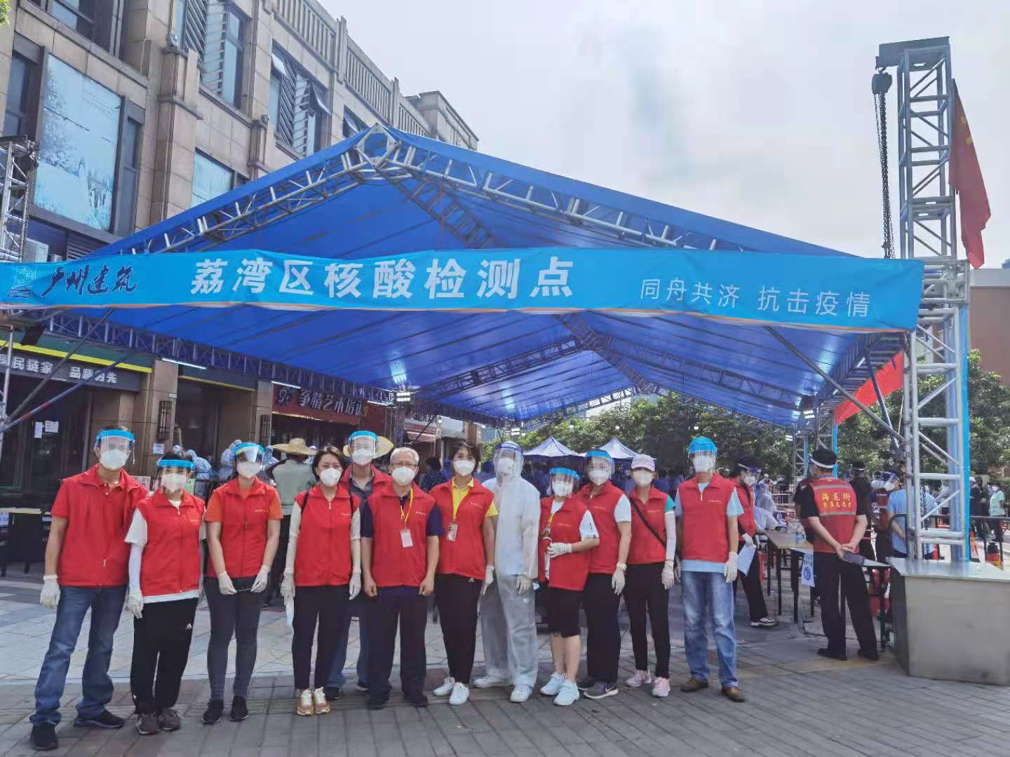 其中,6月10日,突击队接受支援荔湾区多宝街御景社区的核酸检测任务时,面临着人手少、时间紧、任务重三大难题,但15名突击队员毫无畏惧,迎难而上,有序地分为入口指引扫码组、中间分流引导组和扫码核实信息组、扫码登记信息组四个小组,形成一套完整闭环的检测流程,有效提高了工作效能。街坊们按照五人一组的混采模式,从入口扫码到检测完成,用时不到10分钟,大家纷纷称赞这次核酸检测比以前速度快了很多,“现场组织工作做得很好!”