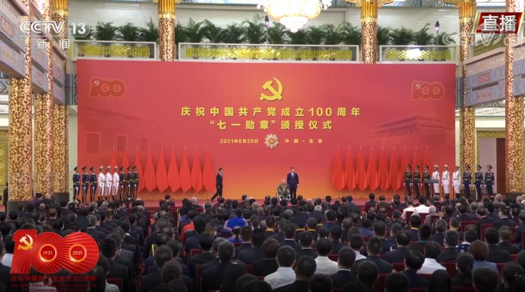 功勋镌刻史册,榜样激励前行。6月29日上午10时,七一勋章”颁授仪式在人民大会堂隆重举行。中共中央总书记、国家主席、中央军委主席习近平颁授“七一勋章”并发表重要讲话。