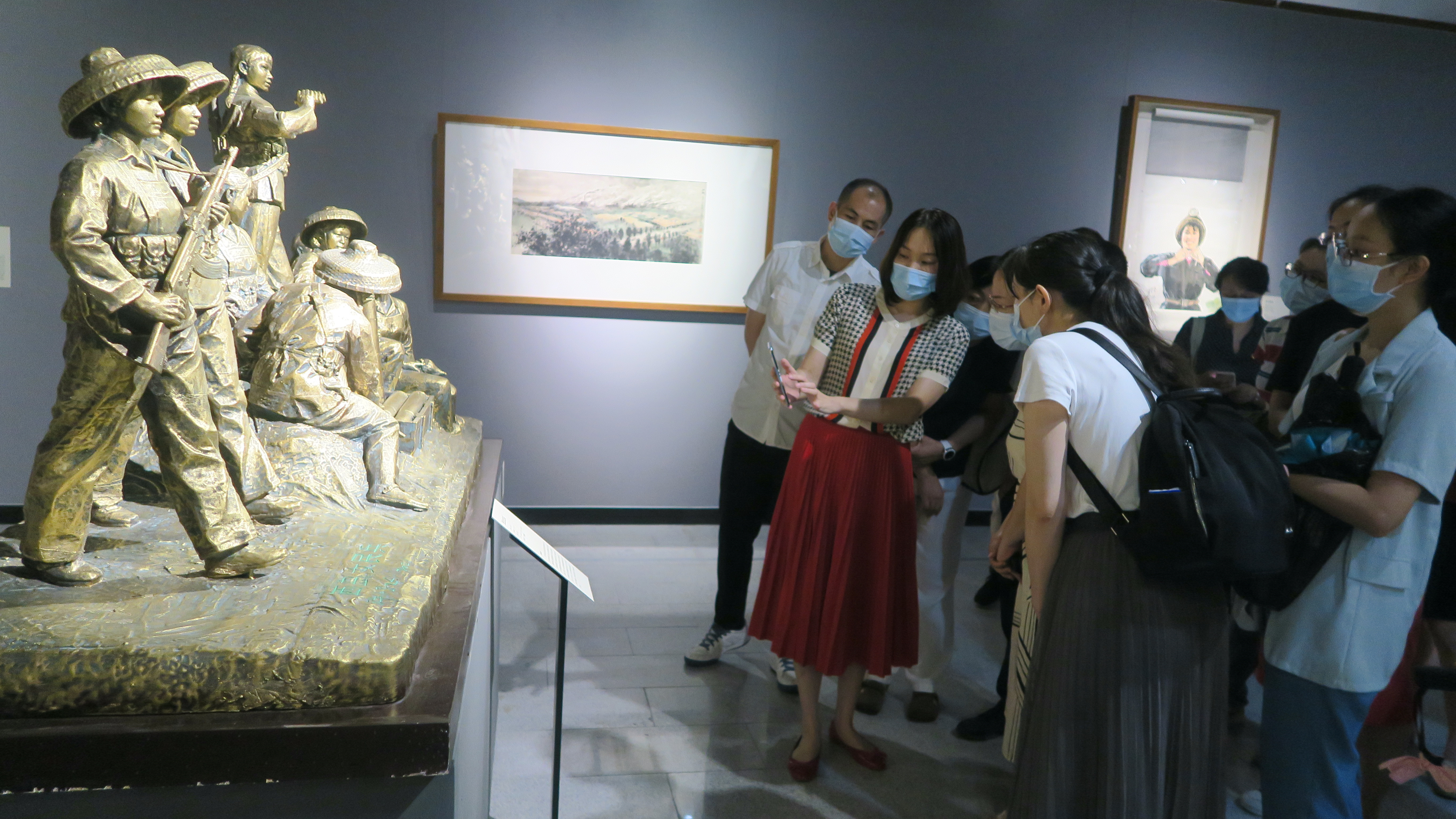 “百年风华时代画卷—广州美术经典中的党史展”以建党百年辉煌历程为主题,汇集了广州美术家们在不同历史时期创作的优秀作品200余件,涵盖中国画、油画、水粉水彩、版画、漆画、雕塑等不同门类。以时间为叙事线索,分为“英勇斗争”“火红建设”“春潮涌动”“美好生活”“艺苑新彩”五大篇章,生动讲述了中国共产党“为中国人民谋幸福、为中华民族谋复兴”的光辉历程,深刻反映了中华民族的沧桑巨变和共产党人的壮美精神。