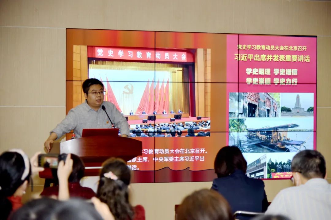 朱贞副教授介绍了中国共产党不忘初心和使命,将马克思主义结合中国国情进行中国化的伟大创造,团结并领导人民从革命、建设、改革开放到新时代不同阶段砥砺奋进的过程,从史出发、以史寓理、以理励志,在总结历史经验的同时,也启发大家对赓续革命精神、传承红色基因进行深入思考。