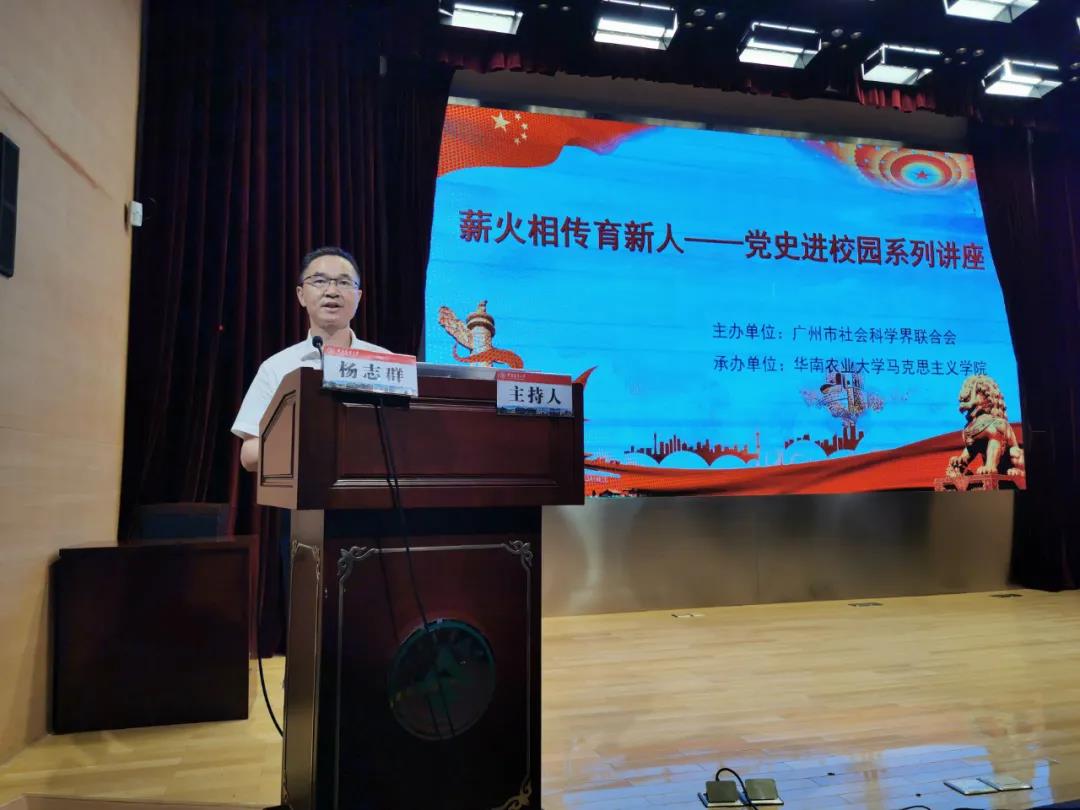 5月21日,由广州市社会科学界联合会主办、华南农业大学马克思主义学院承办的“薪火相传育新人——党史进校园系列讲座”第八场在华南农业大学图书馆报告厅举行,特邀华南理工大学莫岳云教授作主题报告。报告会由华南农业大学党委常委、宣传部部长杨志群主持,马克思主义学院副院长蒋正峰作总结,该校教师代表、研究生、本科生等200余人参加活动。