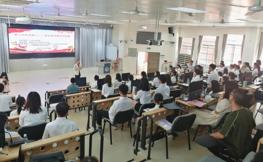 广州番禺职业技术学院党委书记林洽生发表了欢迎辞,他指出,“薪火相传育新人——党史进校园”系列讲座是党史学习教育的一种创新形式,希望思政课教师学史明理、学史增信、学史崇德、学史力行,从党史中汲取经验和智慧,坚定马克思主义信仰,担当立德树人使命;希望广大青年学子学党史、知党恩、跟党走,争做担当民族复兴大任的时代新人。