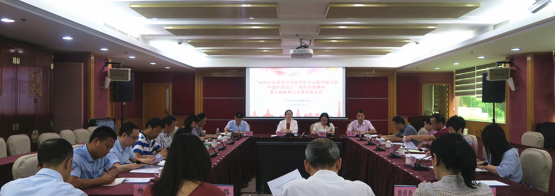 7月24日,广州市社科联组织广州社科界召开学习习近平总书记致中国文联中国作协成立70周年贺信精神暨主题教育征求意见建议座谈会。市委宣传部副部长,市社科联党组书记、主席曾伟玉出席会议并讲话。会议由市社科联副主席郭德焱主持,来自华南理工大学、广东外语外贸大学、广东工业大学、广东财经大学、广东技术师范大学、广州市社会工作学会、广州市创意经济促进会、广州励丰数字文化互动体验社科普及基地、广州高地文化空间社科普及基地和广州市越秀区图书馆社科普及基地等单位的专家学者围绕会议主题作交流发言。