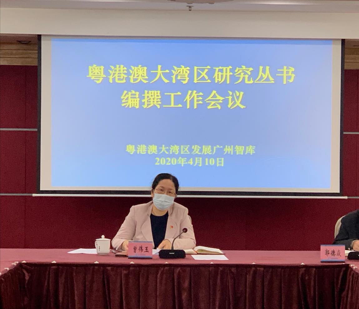 4月10日,广州市社科联、粤港澳大湾区发展广州智库在市社科联组织召开《粤港澳大湾区建设与广州发展研究丛书》编撰工作会议,市委宣传部副部长,市社科联党组书记、主席曾伟玉,市社科联党组成员、副主席郭德焱,市社科联秘书长陈伟民,以及丛书各项目负责人,市委宣传部理论处、市社科联规划部、华南理工大学社科处和粤港澳大湾区广州智库负责人及相关工作人员参加了会议。