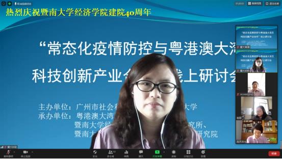 暨南大学粤港澳大湾区经济发展研究中心常务副主任、特区港澳经济研究所所长钟韵教授探讨了在双循环新格局当中粤港澳大湾区科创协同发展的问题,重点提出在双循环新格局中,如何构建大湾区的科创产业集群。深圳大学经济学院段杰副教授通过与旧金山湾区的对比,分析了粤港澳大湾区在建设新生态系统方面的优势和劣势,并提出了粤港澳大湾区今后开展创新生态系统建设的政策建议。