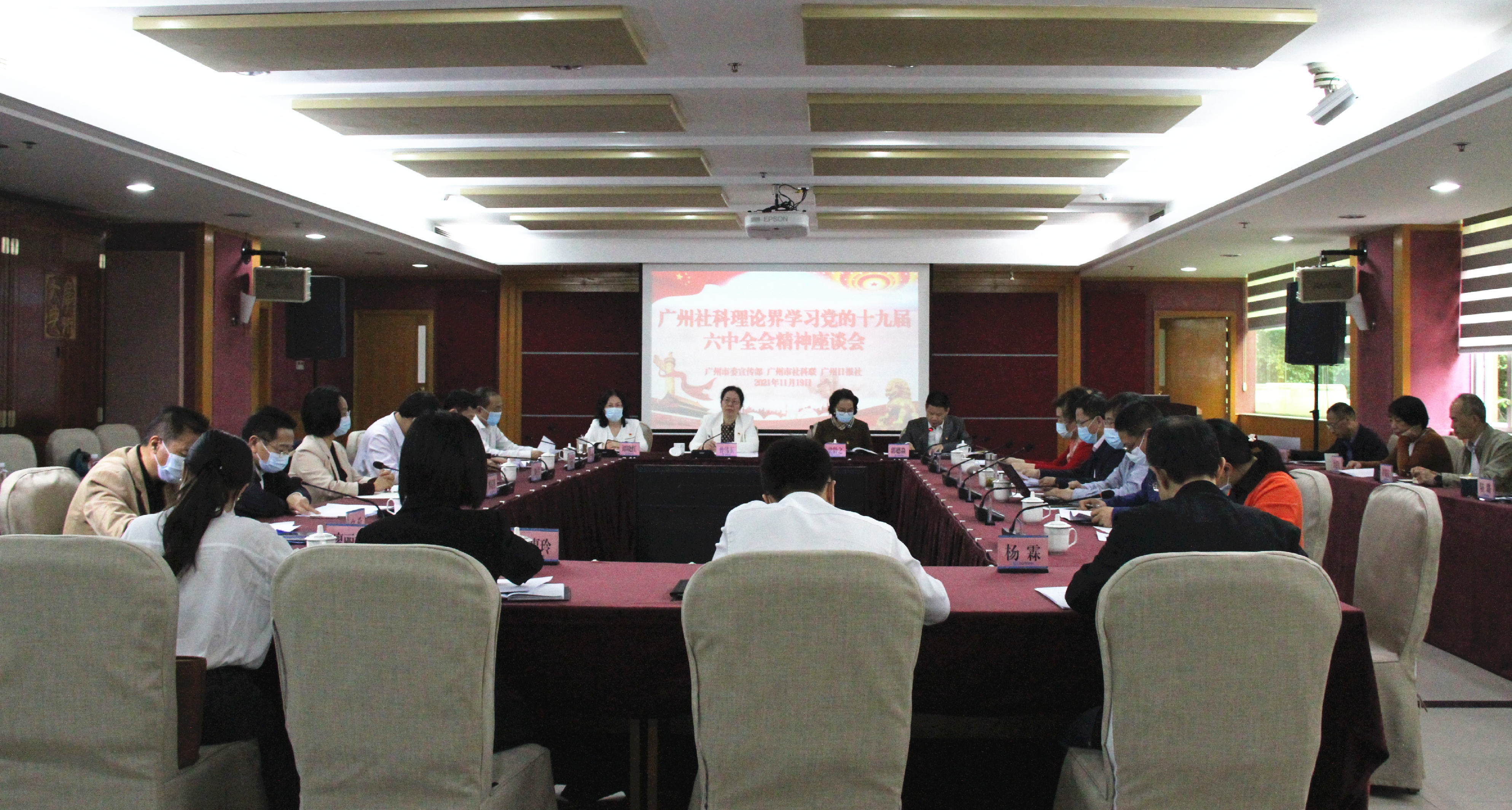 11月19日上午,广州社科理论界学习党的十九届六中全会精神座谈会在市社科联召开。市委宣传部常务副部长,市社科联党组书记、主席曾伟玉出席会议并讲话。市委党史学习教育第四巡回指导组组长梁龄之、副组长范柏根及成员到会指导。市委宣传部相关处室负责同志,市社科联党组成员、副主席谭晓红,一级调研员宣政及业务处室负责同志,来自中山大学、华南理工大学、暨南大学、华南师范大学、广东外语外贸大学、广东工业大学、广州大学等单位的专家学者及媒体记者20余人参加会议。会议由广州市社科联党组成员、专职副主席郭德焱主持。