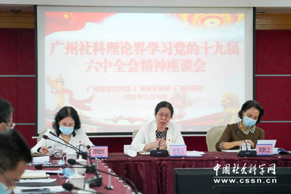 中国社会科学网讯(记者 李永杰)11月19日,广州社科理论界学习党的十九届六中全会精神座谈会在广州市社科联召开。中共广州市委宣传部常务副部长、广州市社科联党组书记、主席曾伟玉出席会议并讲话。来自广东省内高校、科研机构的社科专家与会。