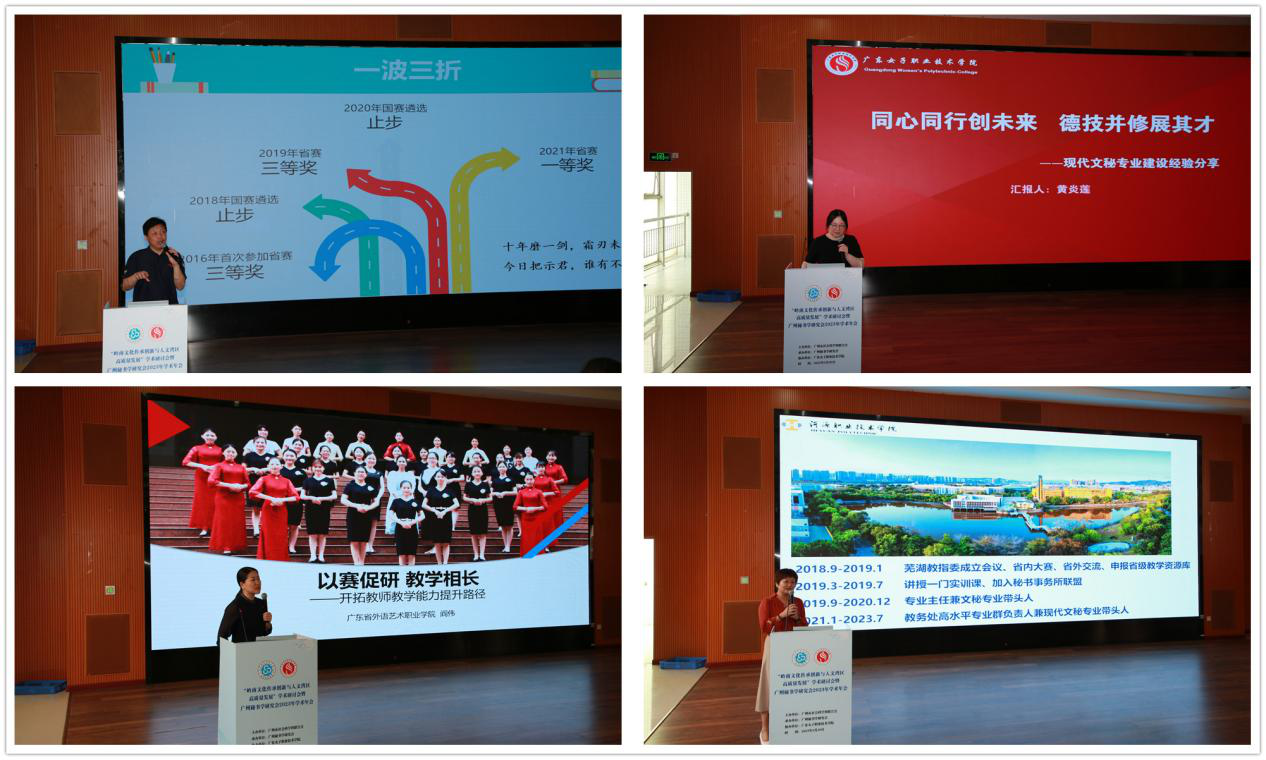 下午,广东女子职业技术学院管理学院副院长黄炎莲、广东科学技术职业学院人文与传媒学院副院长向阳、广东省外语艺术职业学院现代文秘专业带头人阎伟、河源职业技术学院教务处韩开绯教授围绕现代文秘专业教师教学能力大赛、高职现代文秘专业教学资源库建设等话题作了学术报告及经验分享。