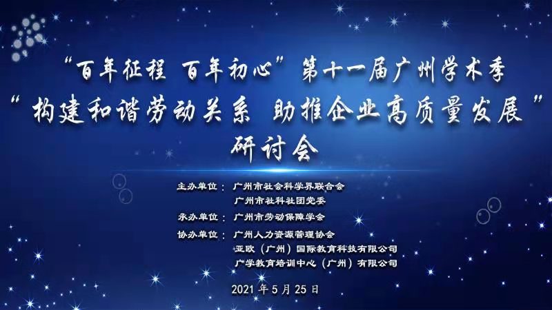 2021年5月25日下午,由广州市社科联主办,广州市劳动保障学会承办的“构建和谐劳动关系,助推企业高质量发展”学术研讨会顺利举行。广州市社科联党组成员、专职副主席、市社科社团党委书记谭晓红同志出席会议并致辞。来自省人力资源和社会保障厅、市人社局劳动监察监督处、花都区劳动人事争议仲裁院等省、市、区人社部门相关领导、中山大学知名学者以及企业劳动法律专家与一线工作者50余人参加研讨。会议由广州市劳动保障学会会长邓志均主持。