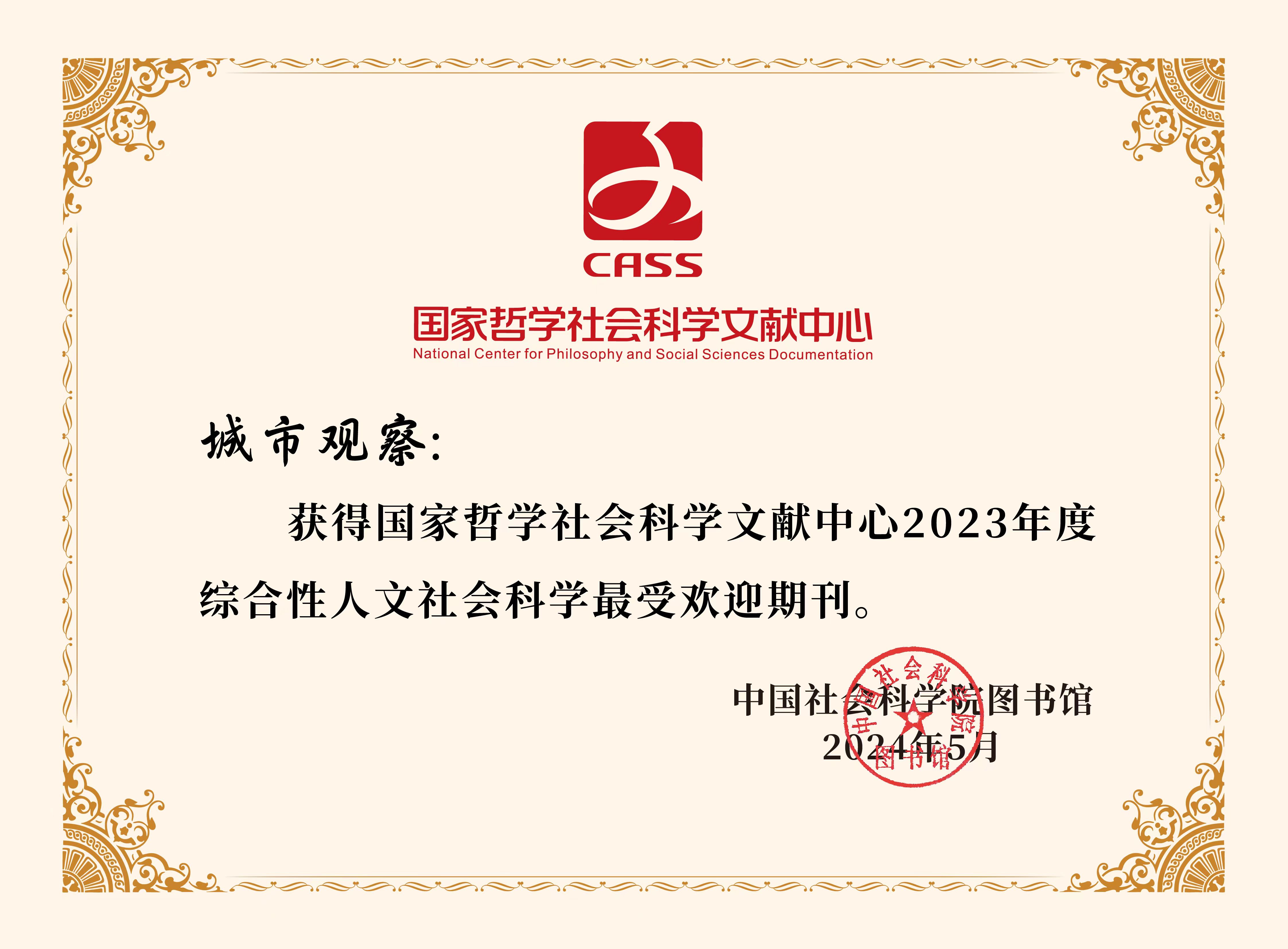 《城市观察》荣获国家哲学社会科学文献中心2023年度最受欢迎期刊称号